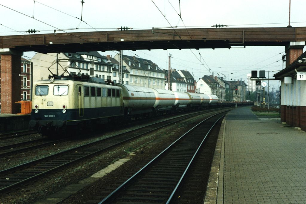 140 388-0 mit eine Güterzug auf Osnabrück Hauptbahnhof (erste Stock) am 14-04-1993. Bild und scan: Date Jan de Vries.