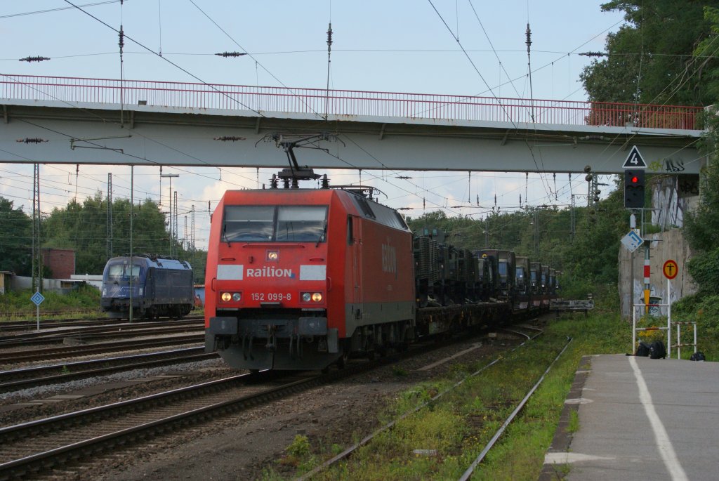 152 099-8 mit einem Militärzug in Duisburg-Entenfang am 04.09.2010