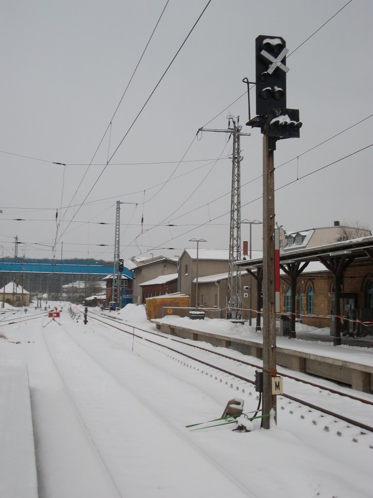 Noch sind die Gleisbauarbeiten in Bergen/Rügen nicht beendet,so bleibt das Ausfahrsignal "M" und "L"(im Hindergrund) in Richtung Lietzow weiter ungültig.