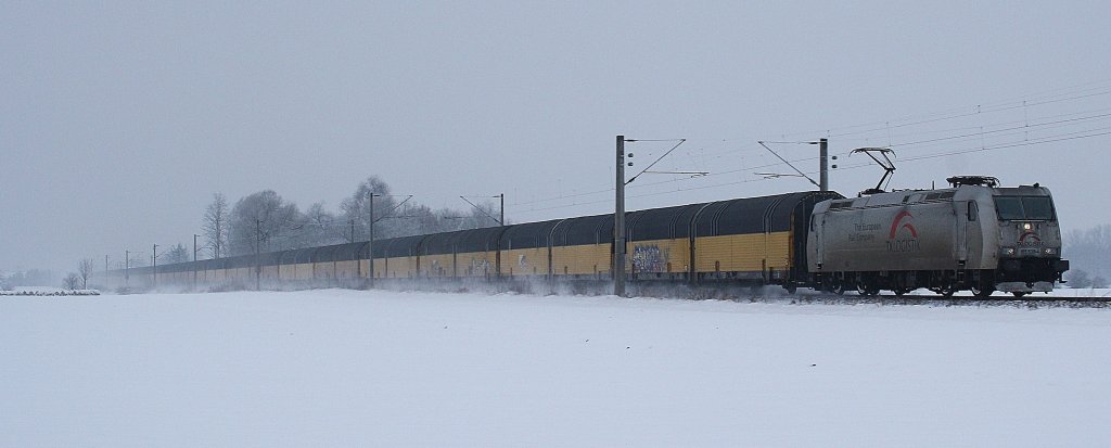 ITL 186 138 fährt mit einem Autotransport durch Dresden-Dobritz; 04.12.2010