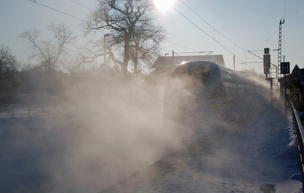 ... und wirbelt dabei ganz schön viel Schnee auf. Fotografiert am 04.12.10 in Burgkemnitz.