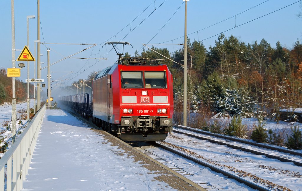 185 081 zieht am 04.12.10 einen gemischten Gz durch Burgkemnitz Richtung Bitterfeld.