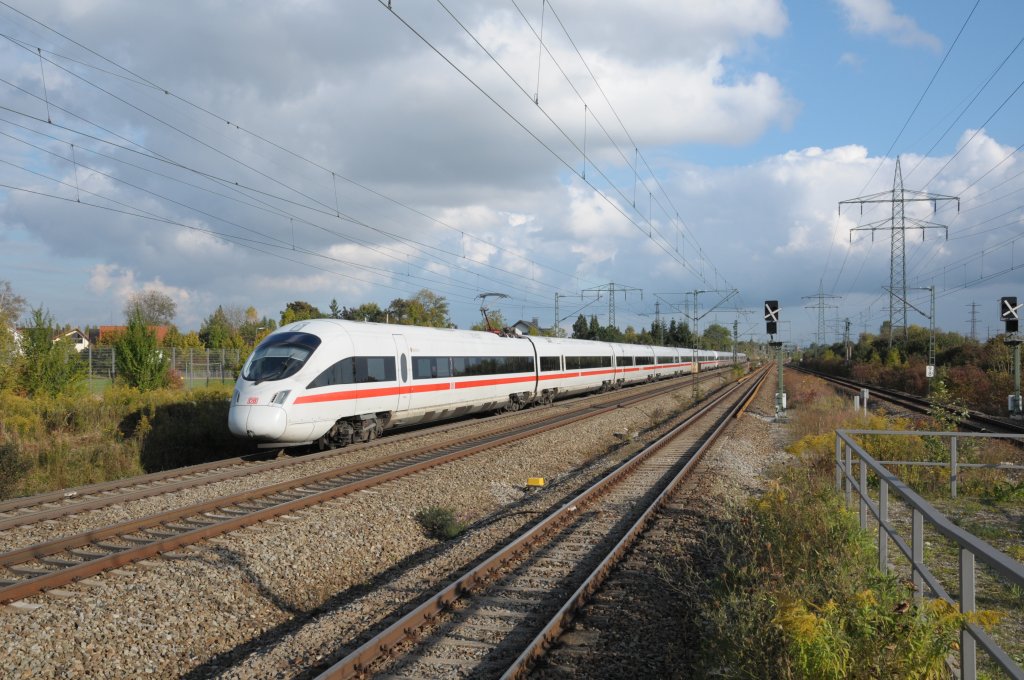 Ein ICE-T der BR 411 durcheilt mit ordentlich Verspätung Burgkemnitz Richtung Berlin.