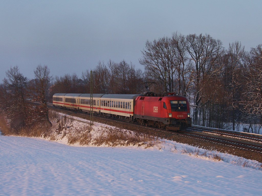 1010.10 war heute Früh mit dem D16348 von Wien/West nach Steyr unterwegs. Nach den nächtlichen -15°C gab es auch herrliches Bügelfeuer. Foto nahe Eichgraben; 5.12.2010
