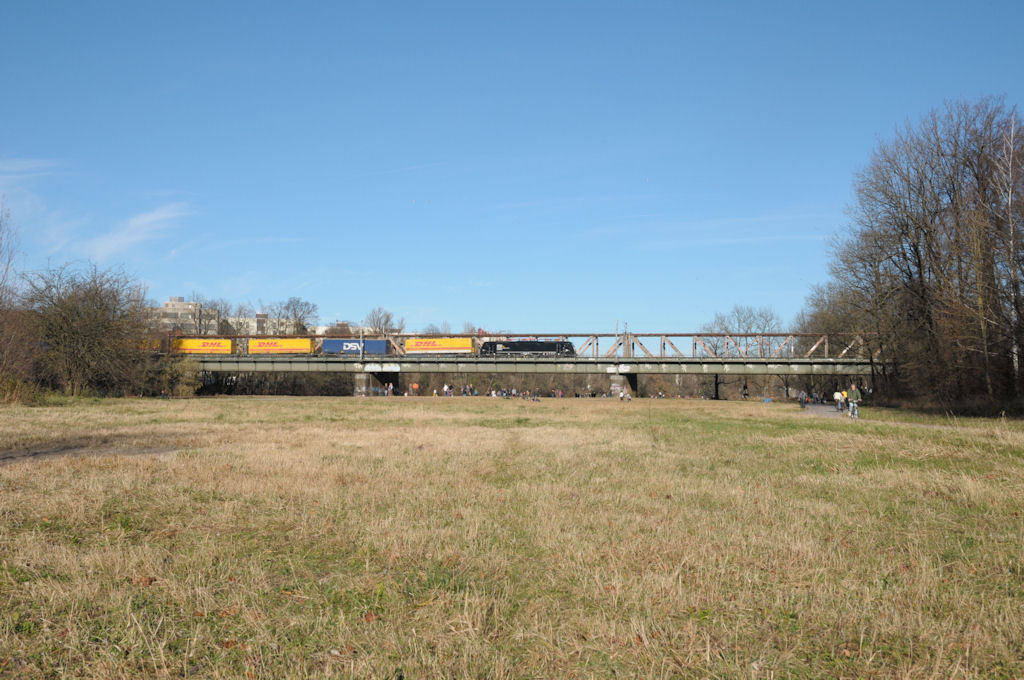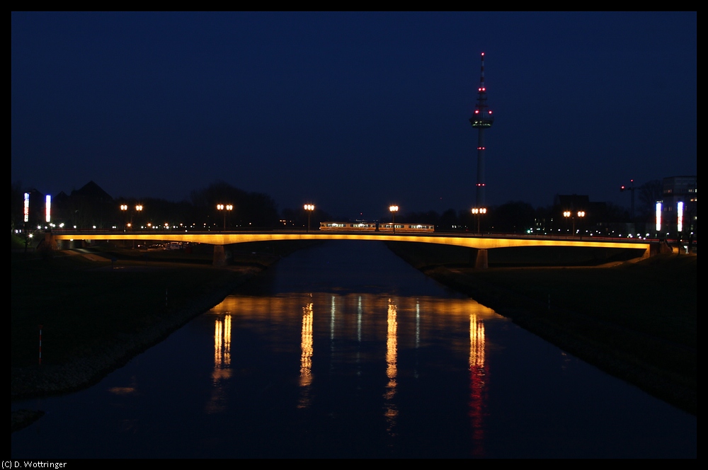 RHB-Zug 1017+1057 am 28. November 2010 auf der Friedrich-Ebert-Brücke. Im Hintergrund erkennt man den Mannheimer Fernmeldeturm.