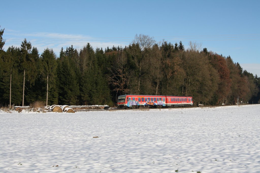 Ein 628 ist von Burghausen Richtung Mühldorf bei Pirach am 07.12.10 unterwegs.