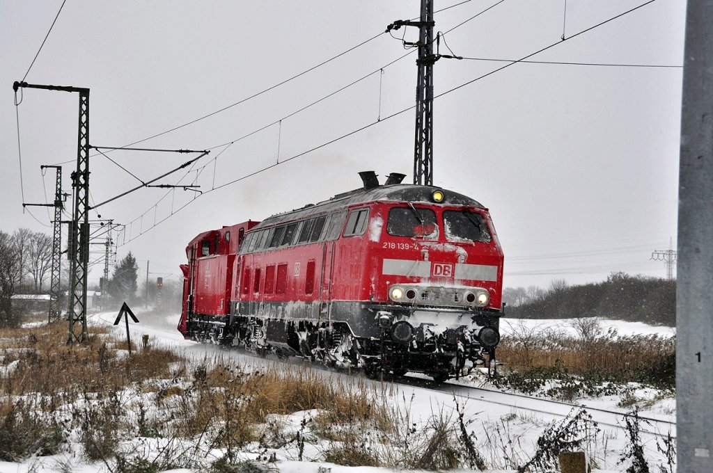 vom Räumdienst zurück kommt 218 139 aus Richtung Grimmen nach Stralsund am 02.12.2010