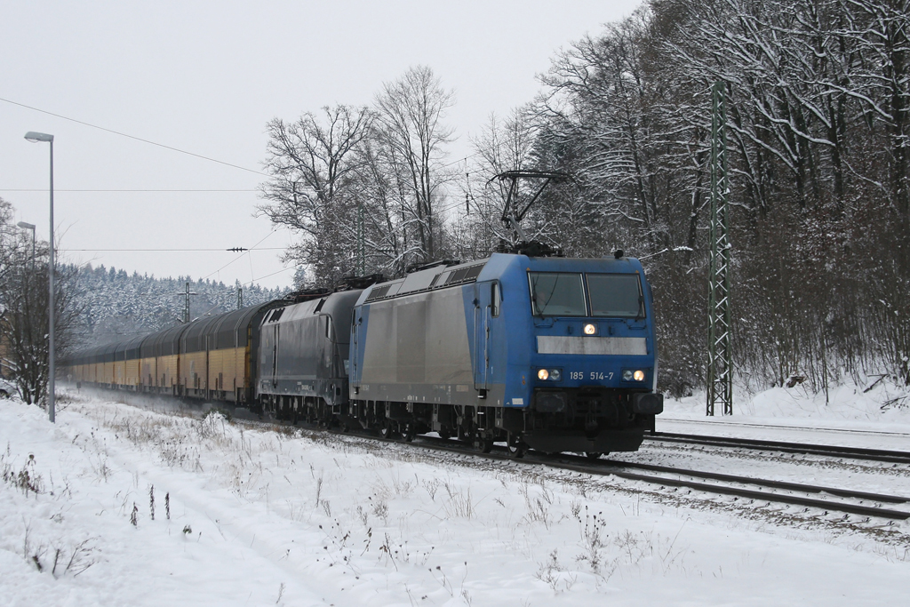185 664 + 139 310 mit einem KLV Zug am 04.12.2010 bei Hilperting.