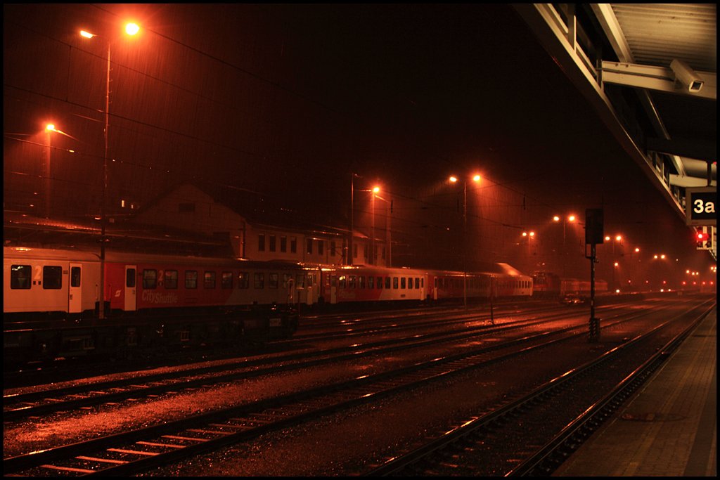 Das Bild wurde im Original in der Dämmerung am Abend aufgenommen. Hier ist nun für bahnbild die aufgehellte Version, welche den Zug nun zwar hell zeigt, allerdings damit auch ohne die originale Abendstimmung. 14.04.09