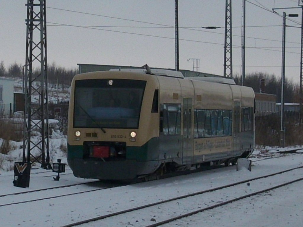654 046 (VT46) als VBG83113 in Voigtsgrün, 15.2.010. Man beachte, dass mit 0-Licht-Spitzensignal gefahren wird ;)