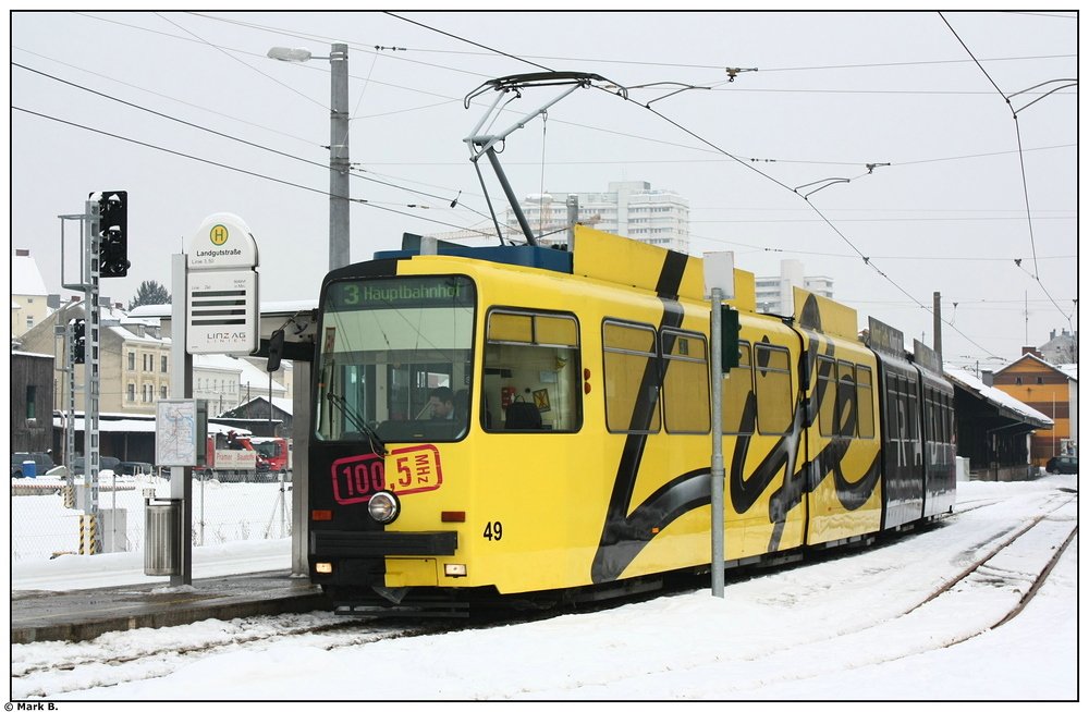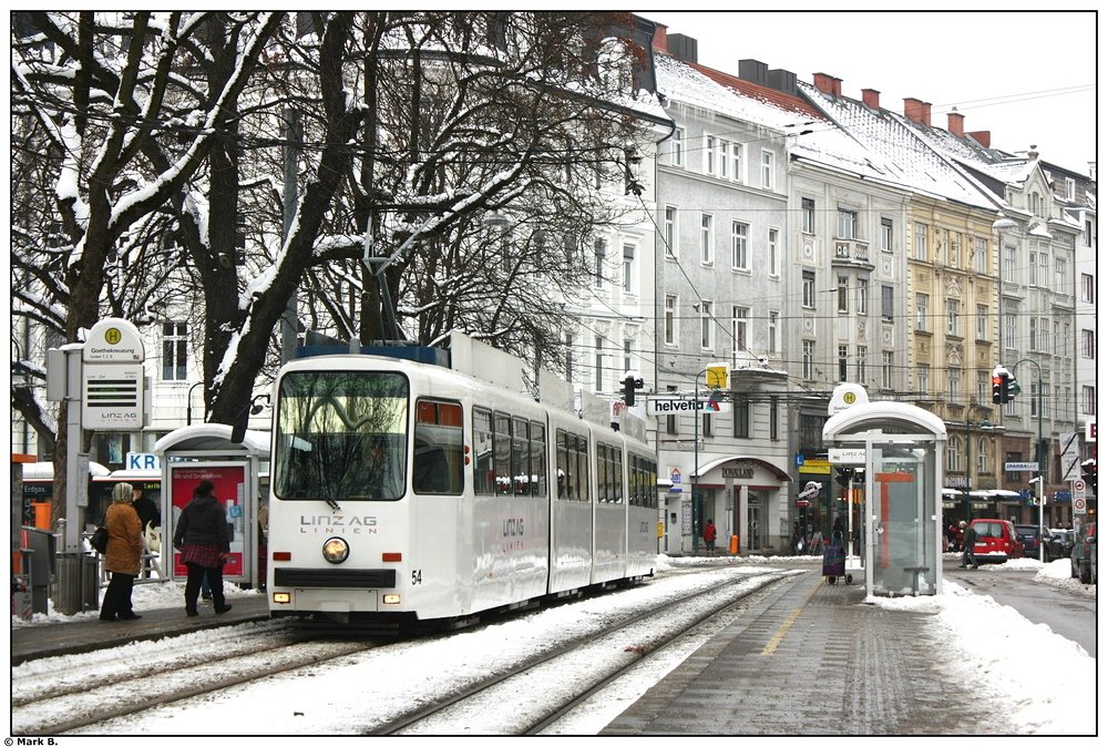 Endstelle Urfahr mit Zehnachser. Aufgenommen am 13.02.10