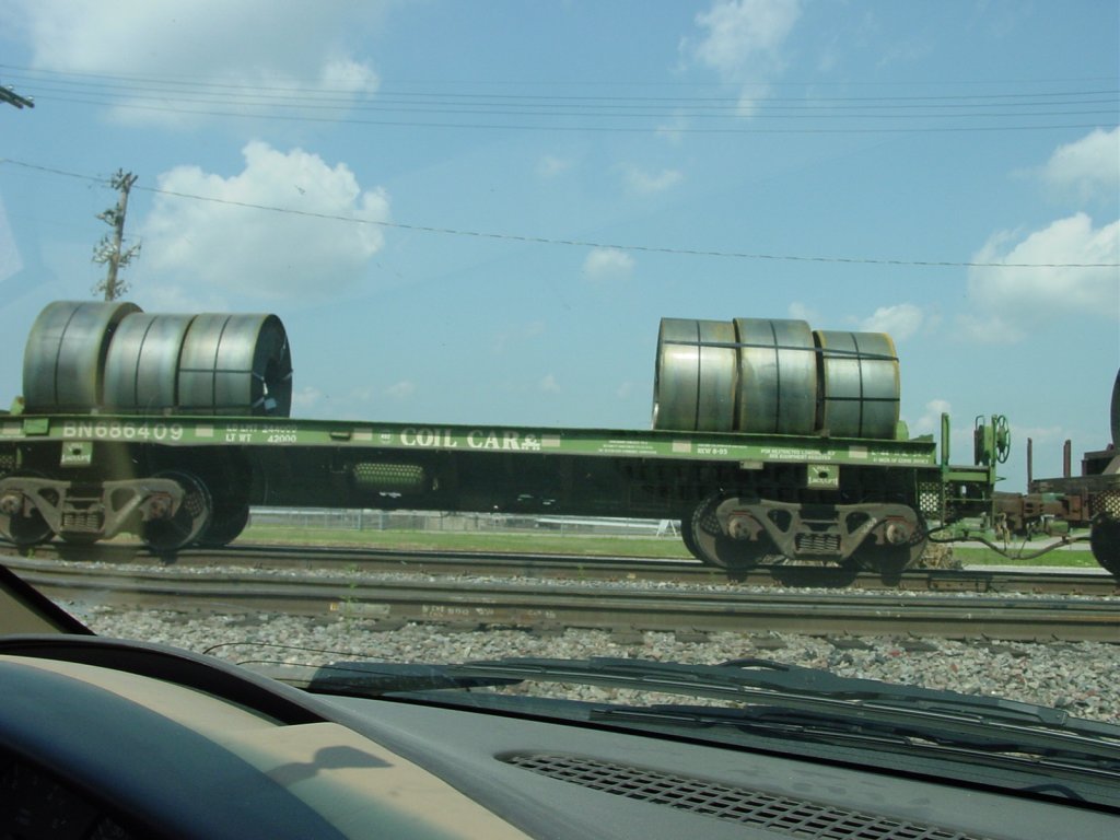 Scrap pile on wheels at the Burlington Northern Shops in West Burlington, Iowa, January 2001.
