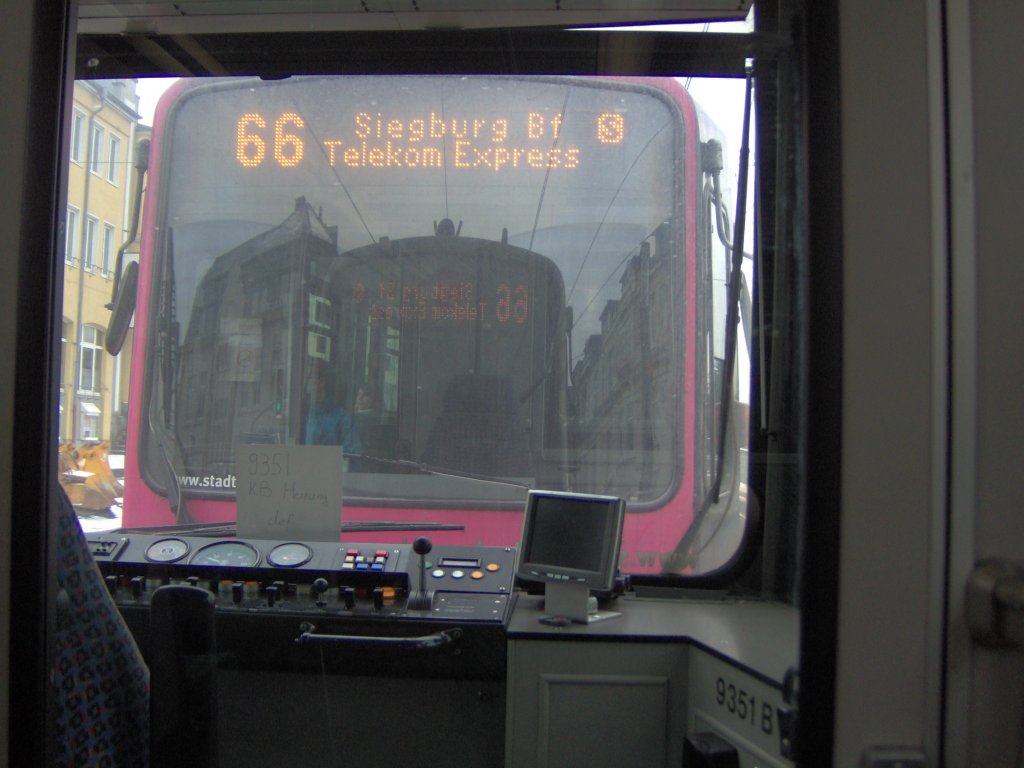 Eine etwas andere Sicht der Stadtbahn der Linie66.Dieses Bild wurde aus einem Stadtbahnwagen aufgenommen(Personenbereich).Hier fährt die Bahn gerade durch Beuel.13.2.10.