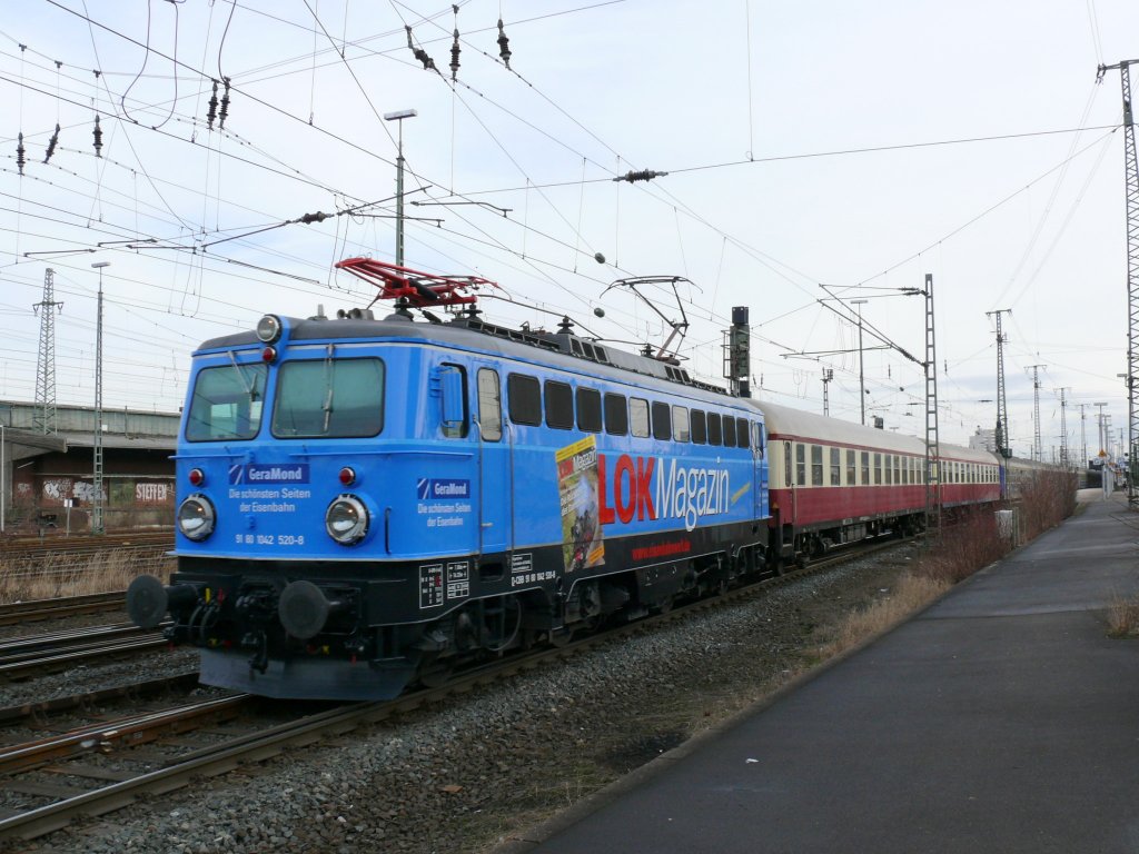 1042 520-8 mit ca +2 Sunden am 16.02.2010 um 12 Uhr bei er Durchfahrt durch Mönchengladbach Hbf. Grund der Verspätung war ein ET 425 den jemand wirklich passend im BW geparkt hatte.