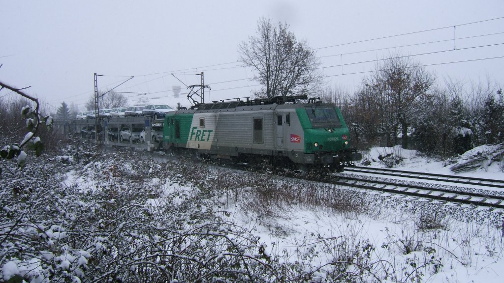 437 026 der SNCF mit einem Autozug am 13.02.2010 in Hannover Limmer