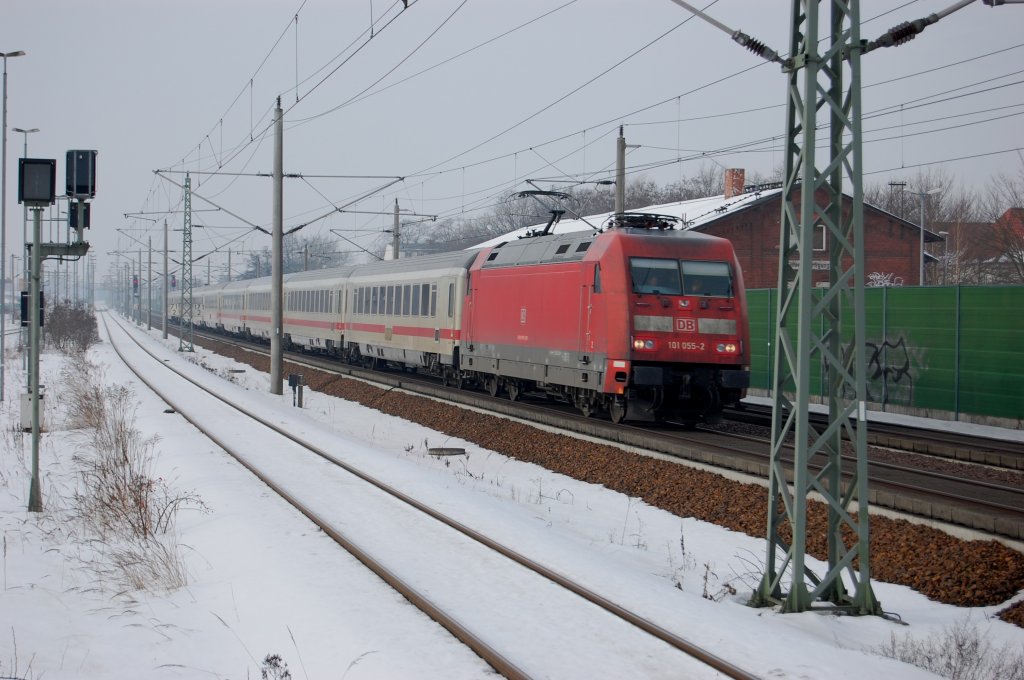 ICN und ICE verlassen den Zürcher Hauptbahnhof. (16.02.2010)