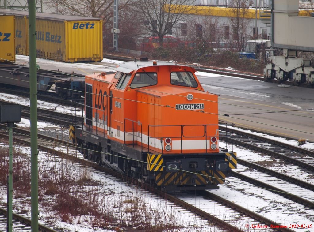 Locon 211 steht im Stuttgarter Hafen zum Rangieren bereit. (19.02.2010)
