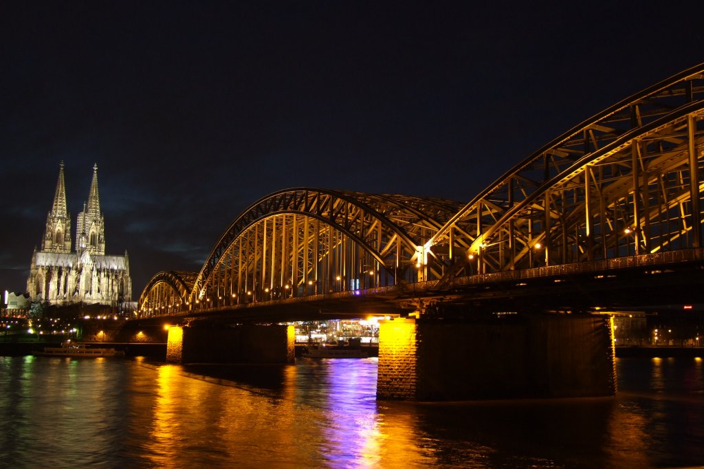 Die Kölner Hohenzollernbrücke am frühen Abend (19.00 Uhr).
