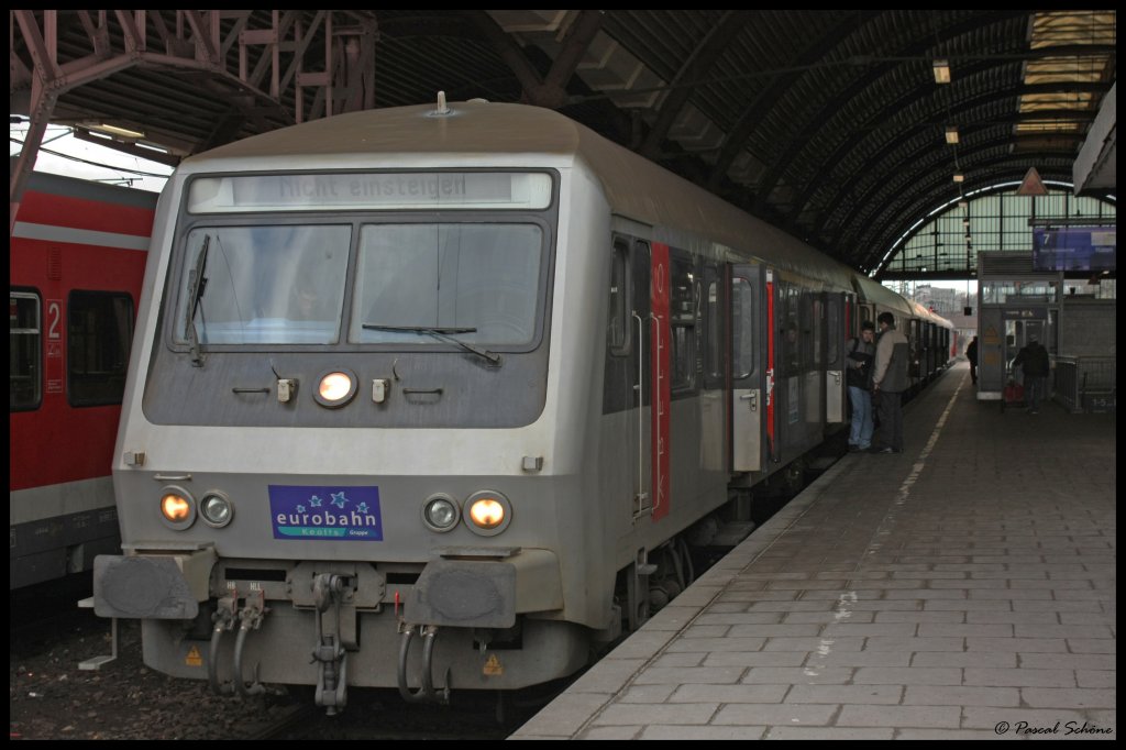 Hier zu sehen der Steuerwagen eines gemischten Eurobahnparks der als RE13 im Mönchengladbacher Hauptbahnhof steht. Die Lok des parks war die 185 009 die ebenfalls im Besitz der Eurobahn ist. 21.02.10 13:20