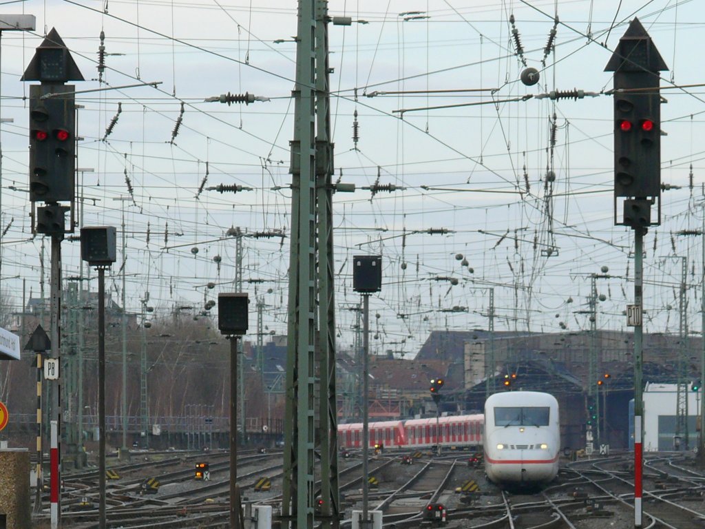 ICE 2 "Magdeburg" als ICE 642 nach Berlin Ostbahnhof, mit einer 422er Doppelgarnitur als S1 Düsseldorf - Dortmund am Haken, Einfahrt kurz vor Dortmund Hbf.(19.02.2010)