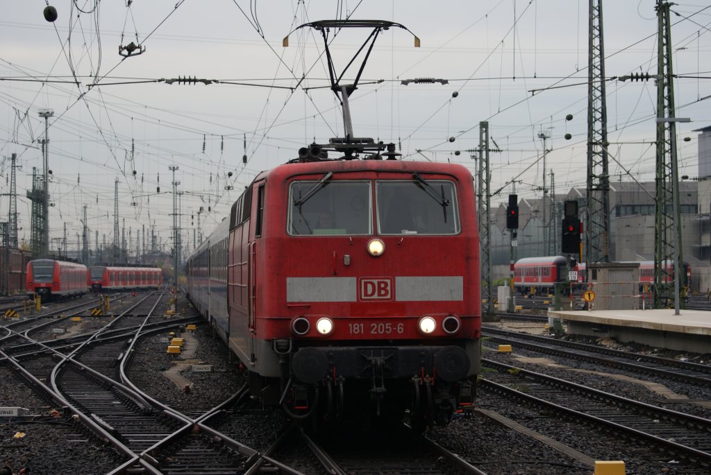 181 205-6 mit einem EN bei der Einfahrt in Frankfurt Hbf am 14.11.2009
