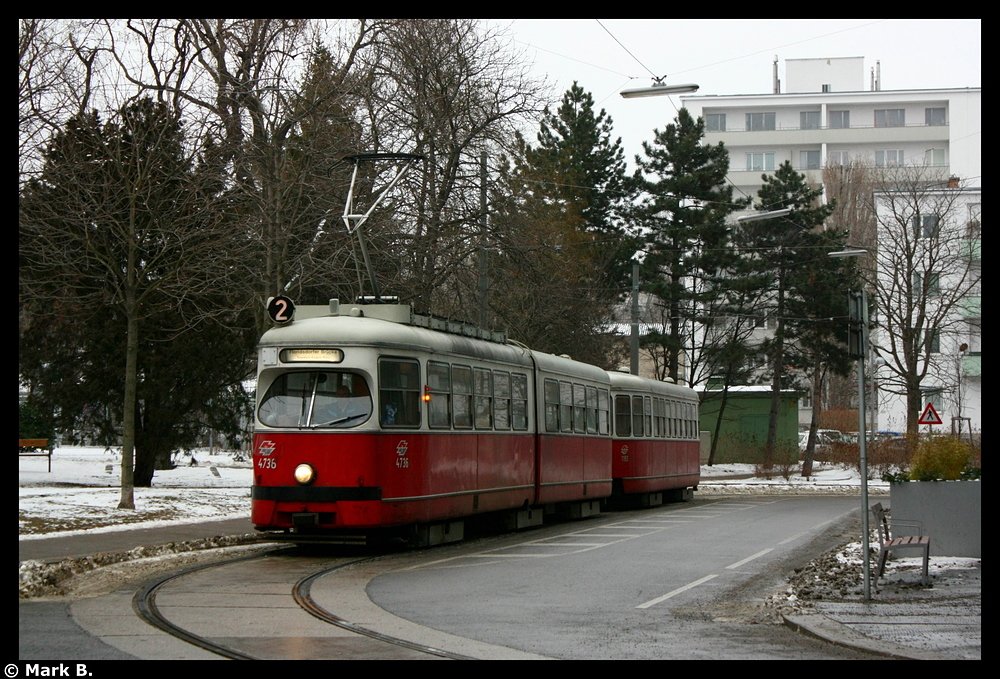 Jena: Straßenbahnlinie 4 nach Zwätzen Schleife an der Haltestelle Burgau.(28.1.2010)