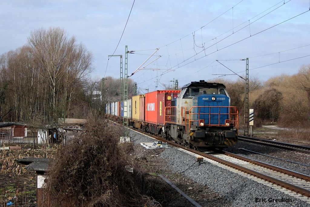 183 701 (mal etwas Weisses) mit Zug der Wiener Lokalbahnen Cargo am 27. Februar 2010 durch Ratingen-Lintorf.