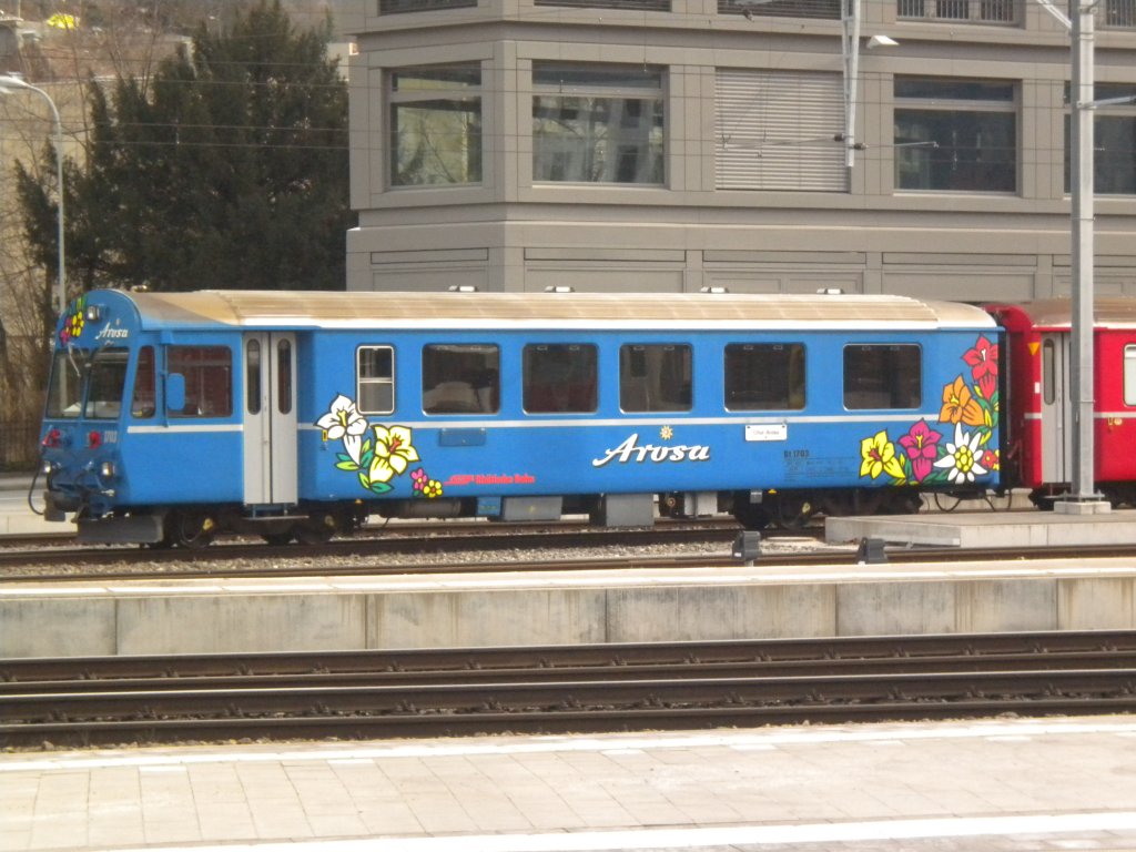 RhB Arosa-Express Steuerwagen ... im Abstellareal in Chur. 25.02.2010