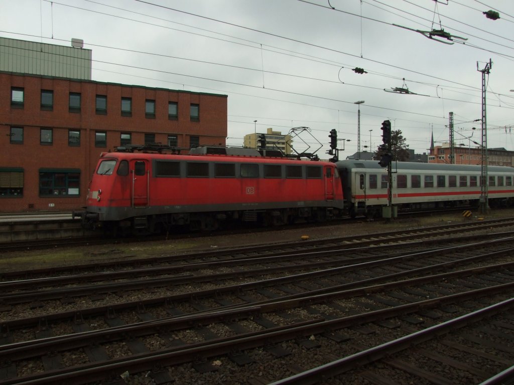 Die 111 147-5 zieht ihren RE4 Verstärker aus Düsseldorf nach Aachen am 05.02.2010