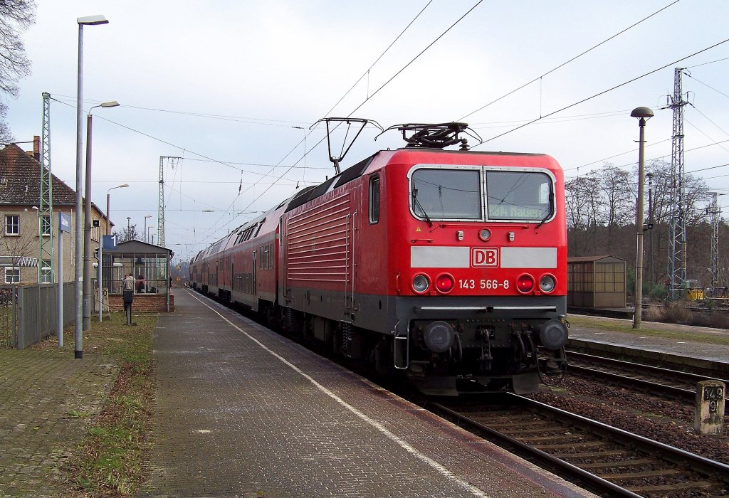 143 566-8 kommt hier schon mit der Schlussbeleuchtung in den Bahnhof von Calau/Niederlausitz eingefahren. Aufgrund von Bauarbeiten endet dieser Zug in Calau und fährt nun wieder zurück nach Nauen über Berlin Schönefeld Flughafen. 29.12.2009