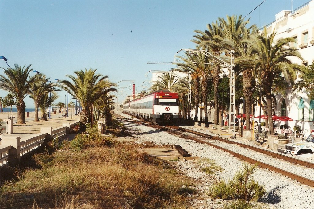 447 163+164 und 229+230 am 21.09.2000 in Malgrat de Mar.Die Triebwagen fahren auf der S-Bahnlinie C 1 von Barcelona nach Macanet-Massanes,