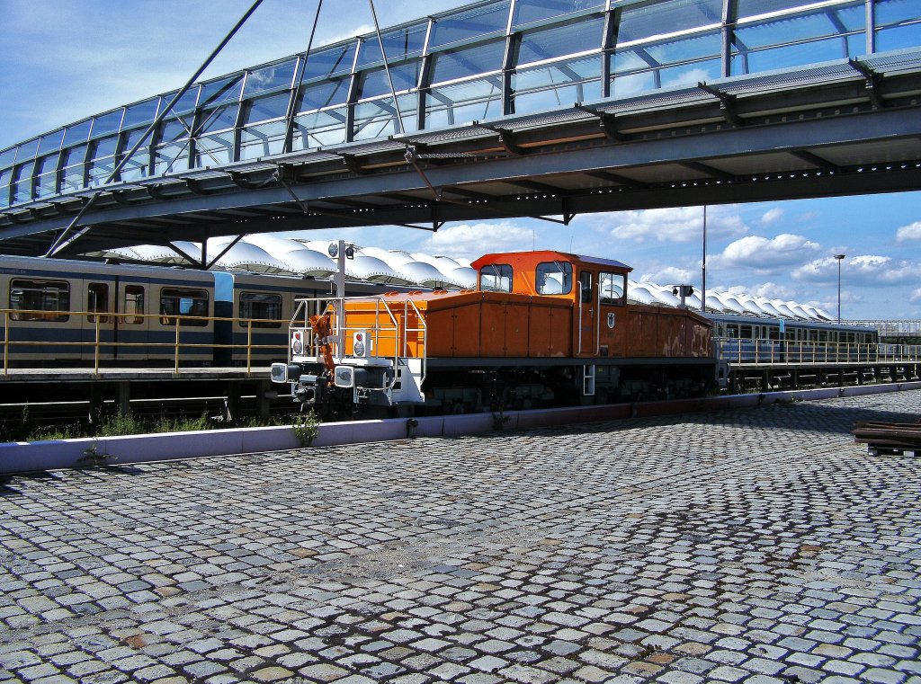S-Bahn im Betriebsbahnhof Rummelsburg. Auch gut zu sehen der sogenannte  Peoplemover , ein Fahrstuhl, der sowohl Höhen als auch Gleise überwindet. 31.12.2009