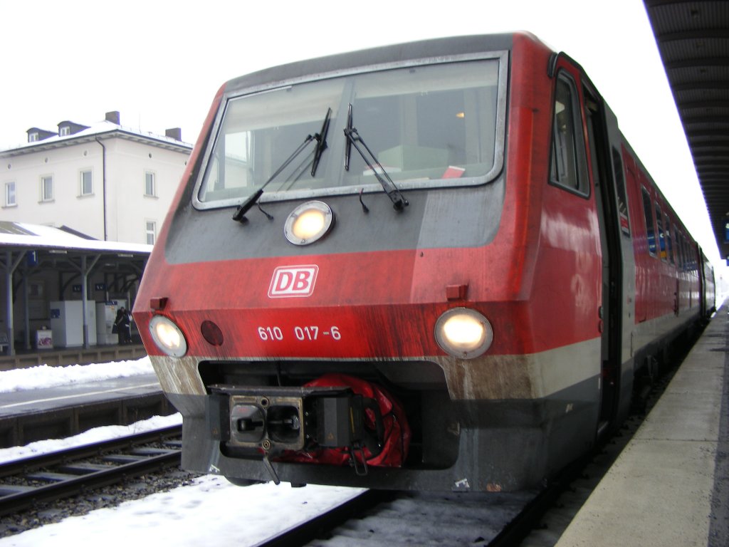 Am 30.12.09 im Bahnhof Marktredwitz aufgenommen. Kommt aus Nue, fährt weiter nach Cheb. Baureihe 610 017-6.