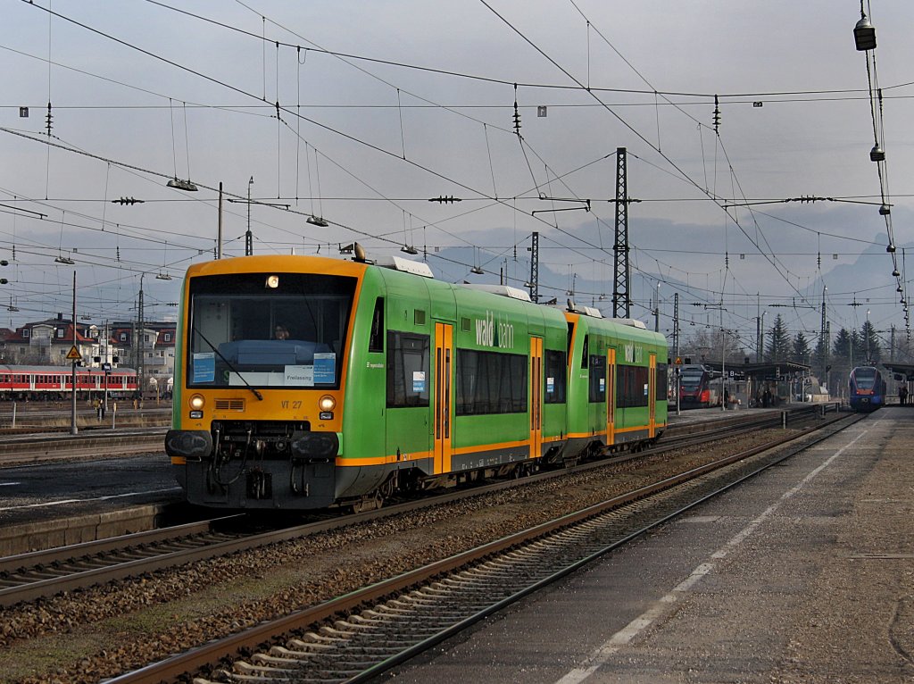 Der VT 27 und der VT 28 der Waldbahn als BLB Ersatzzug am 01.01.2010 bei der Ausfahrt aus Freilassing.