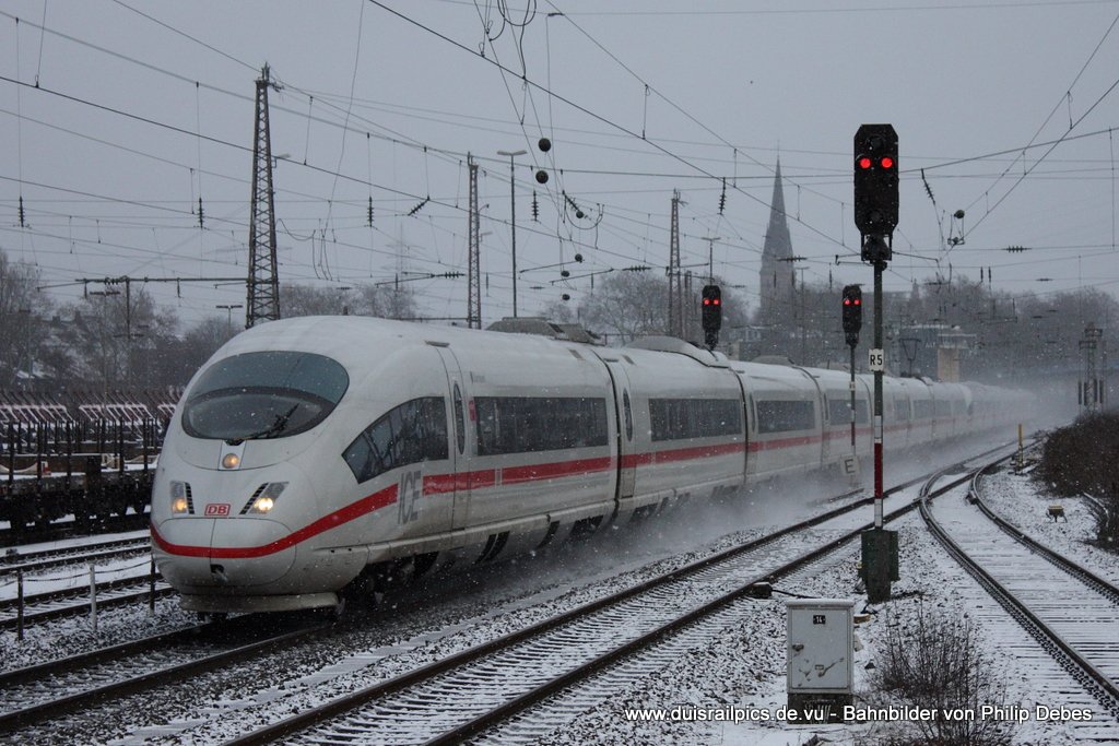 Ein ICE3 fährt am 1. Januar 2009 um 15:18 Uhr durch Mülheim Styrum