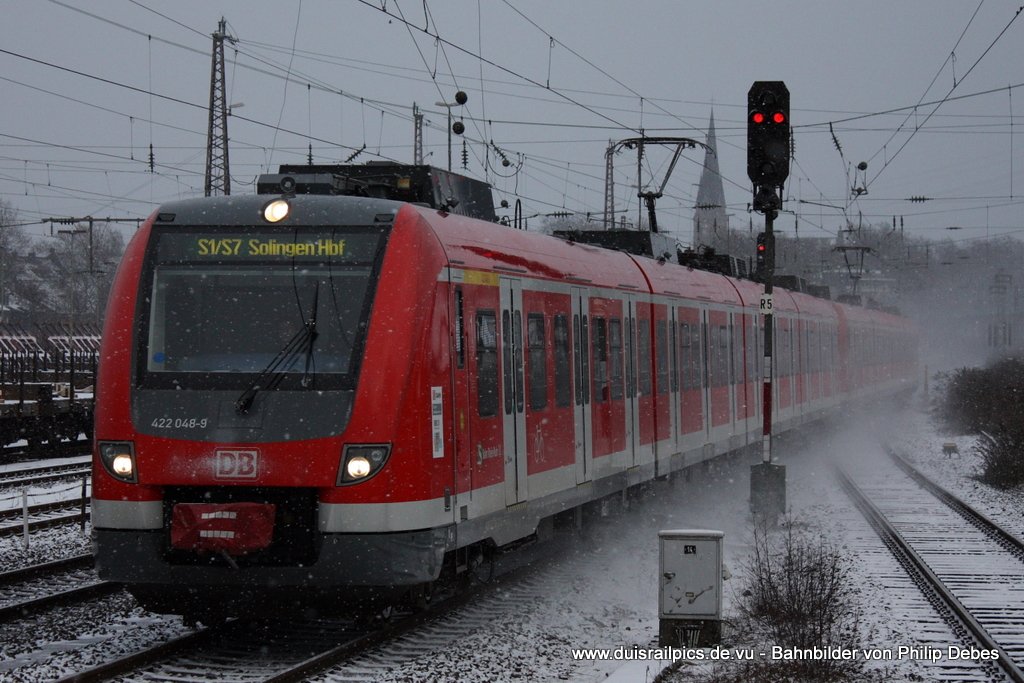 S1/S7 Ri. Solingen Hbf (422 048-9) fährt am 1. Januar 2010 um 15:16 Uhr in Mülheim Styrum ein