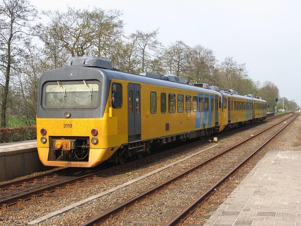 Wadlopers 3119 (DH1) und 3205 (DH2) mit Zug Leeuwarden-Groningen auf Bahnhof Hurdegaryp am 3-5-2006.