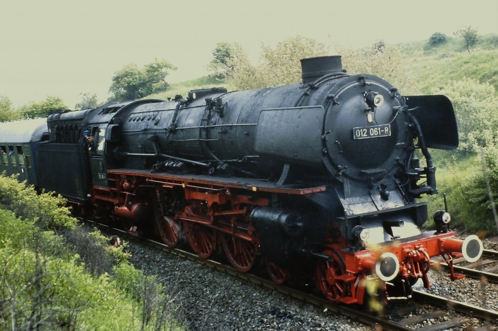 012 061-8 wartet 1975 mit dem Sonderzug der DGEG von Dortmund nach Trier kurz hinter Mechernich auf die Hilfslok, da sie die Steigung nicht allein überwinden kann. Siehe auch die Bilder 48040 und 142526 von dieser Fahrt.