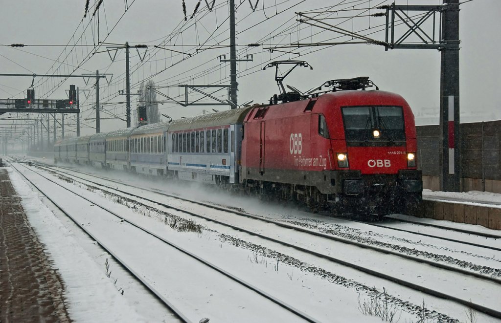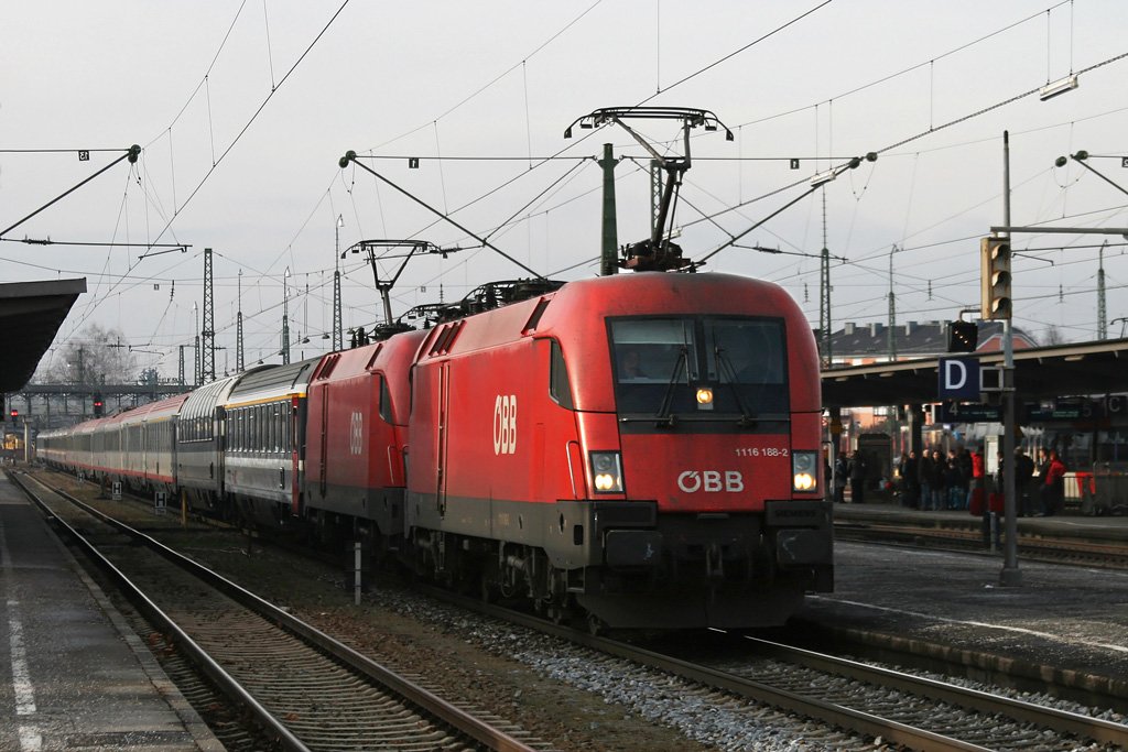 1116 188 + 119 mit dem OEC 163 am 01.01.10 bei der Durchfahrt in Freilassing.