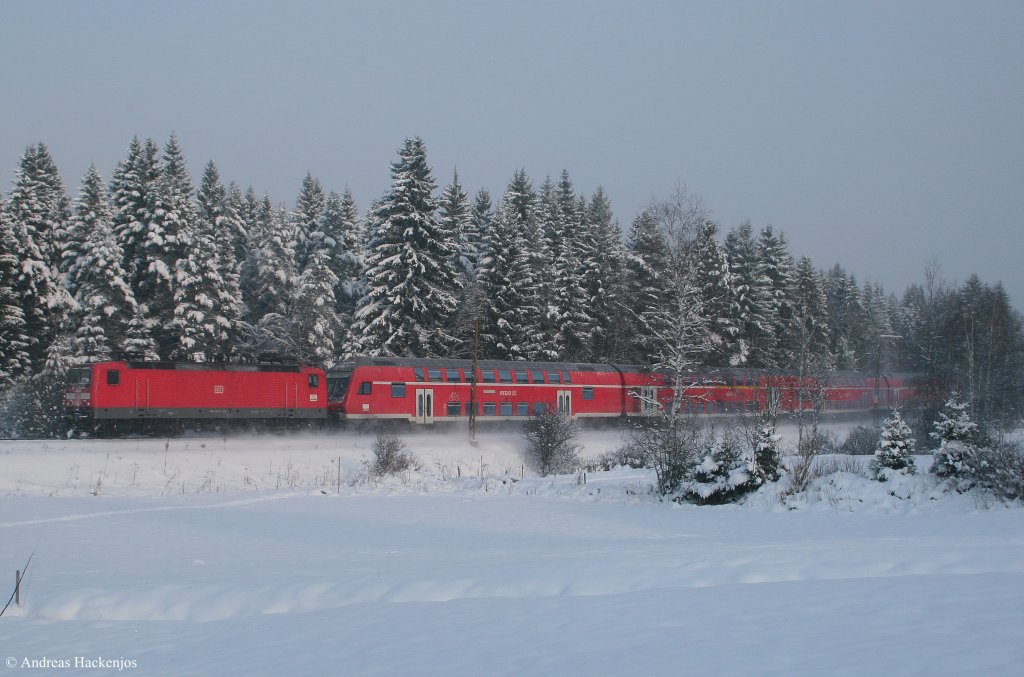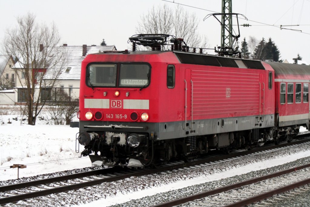 Die 143-165 zieht die RB 34058 von Nürnberg nach Lichtenfels (09.01.10 bei Eggolsheim/KBS 820).