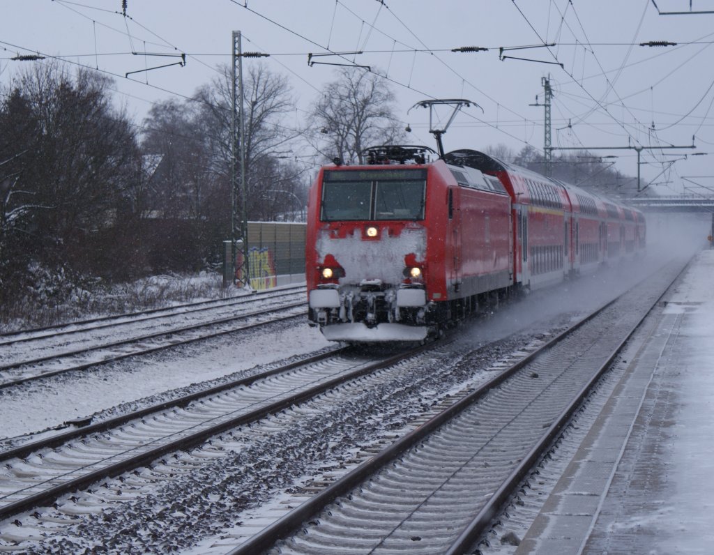 146 *** mit ihrem RE sauste am 09.01.2010 durch den S-Bahnhof Dedensen/Gümmer in Richtung Seelze.