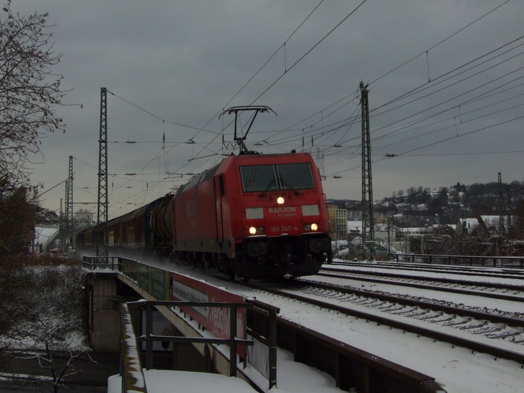 185 247-4 mit einem Güterzug in Richtung Norden wurde zwischen Koblenz Hbf und Koblenz-Lützel von mir erlegt.9.1.2010