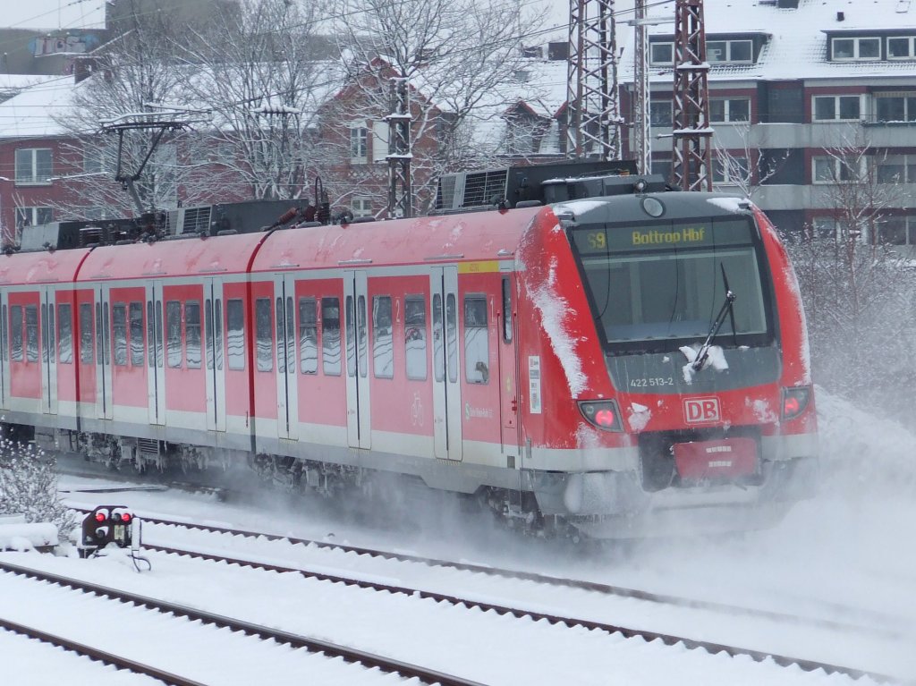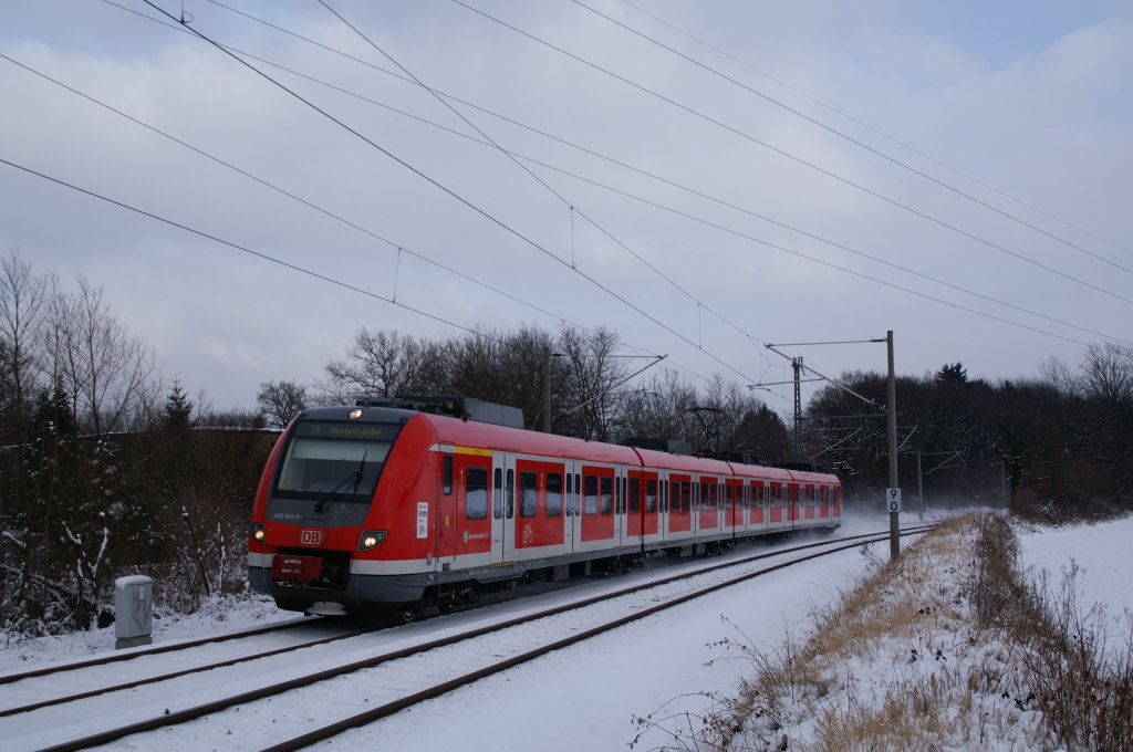 422 041-4 fährt als S9 nach Wuppertal Hbf in Velbert-Rosenhügel ein. 08.01.2010 - 12:52