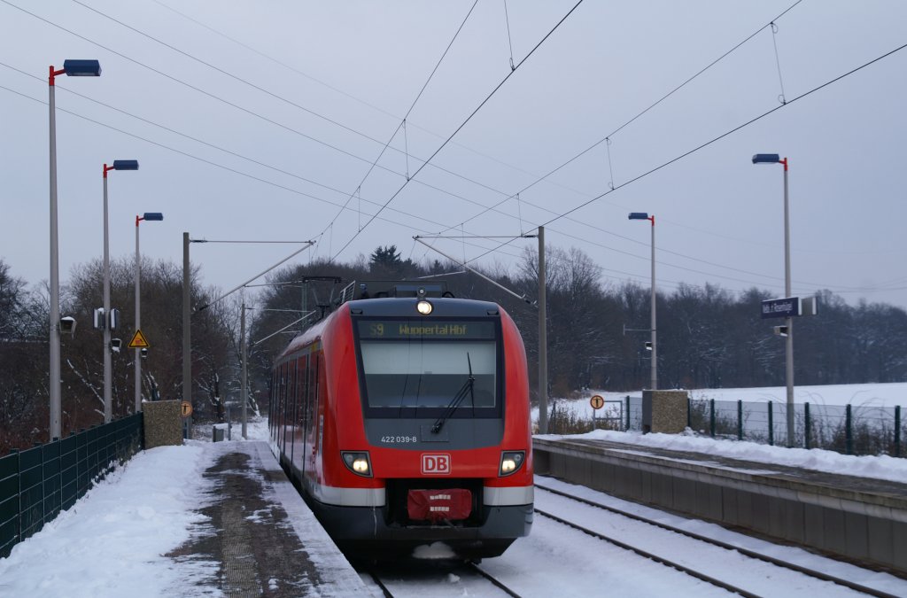 422 039-8 hält als S9 nach Wuppertal Hbf in Velbert-Rosenhügel. 08.01.2010 - 13:32