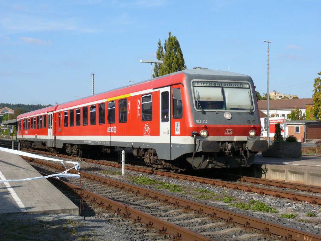 928/628 410 bei der Ausfahrt aus Bayreuth Hbf nach Kirchenlaibach, 26.09.2009 Das Bild wurde, da der Science Express zu Besuch war von freizugänglichen Gelände gemacht.