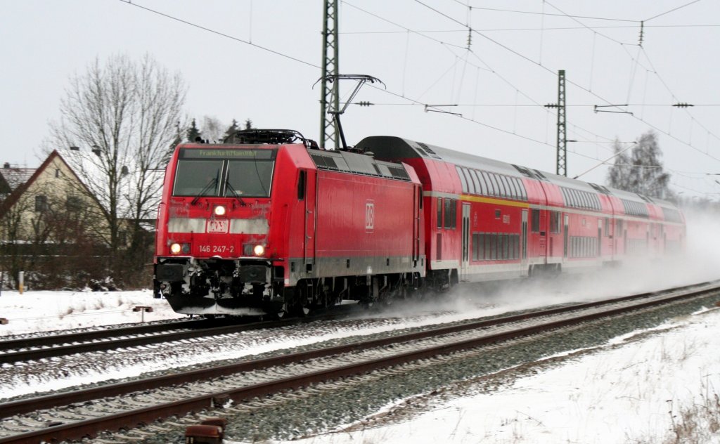 Die 146-247 zieht den RE4782 von Nürnberg nach Frankfurt über Bamberg (09.01.10 bei Eggolsheim/KBS 820).