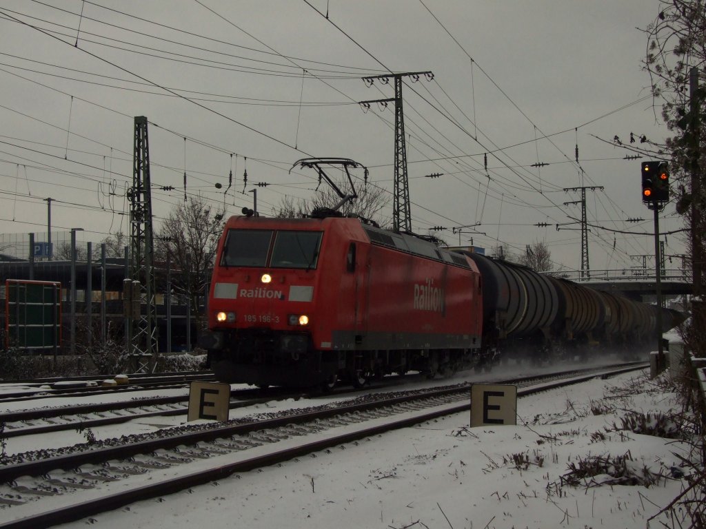Die 185 196-3 mit einem Güterzug in Richtung Süden konnte ich zwischen Koblenz Hbf und Koblenz-Lützel ablichten.9.1.2010