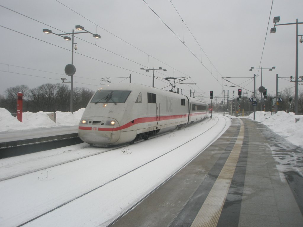 Hier 401 573-2 "Timmdorfer Strand" als ICE694 von Stuttgart Hbf. nach Berlin Ostbahnhof, bei der Einfahrt am 10.1.2010 in Berlin Hbf.
