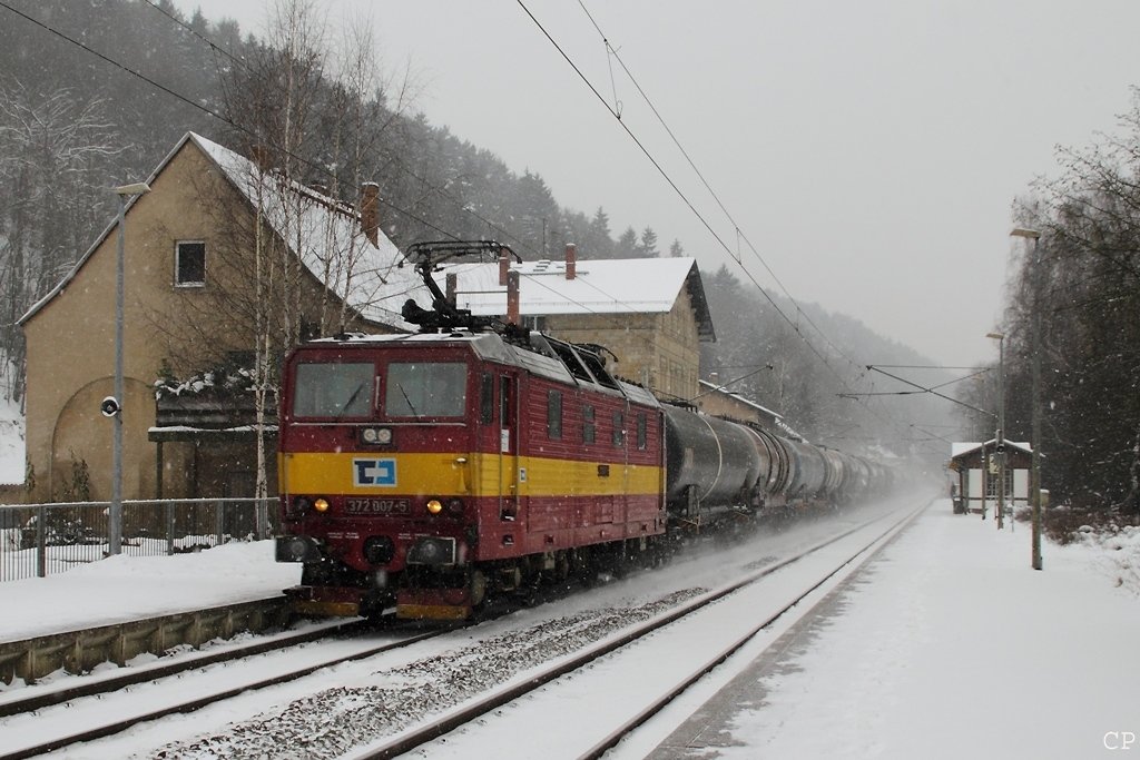 371 001-9 ( Lucka ) ist am 9.1.2010 mit dem Elbe-Labe-Sprinter (Os 17267) unterwegs nach Decin. In Krippen legt sie einen kurzen Halt ein. Grüße an den netten Tf!