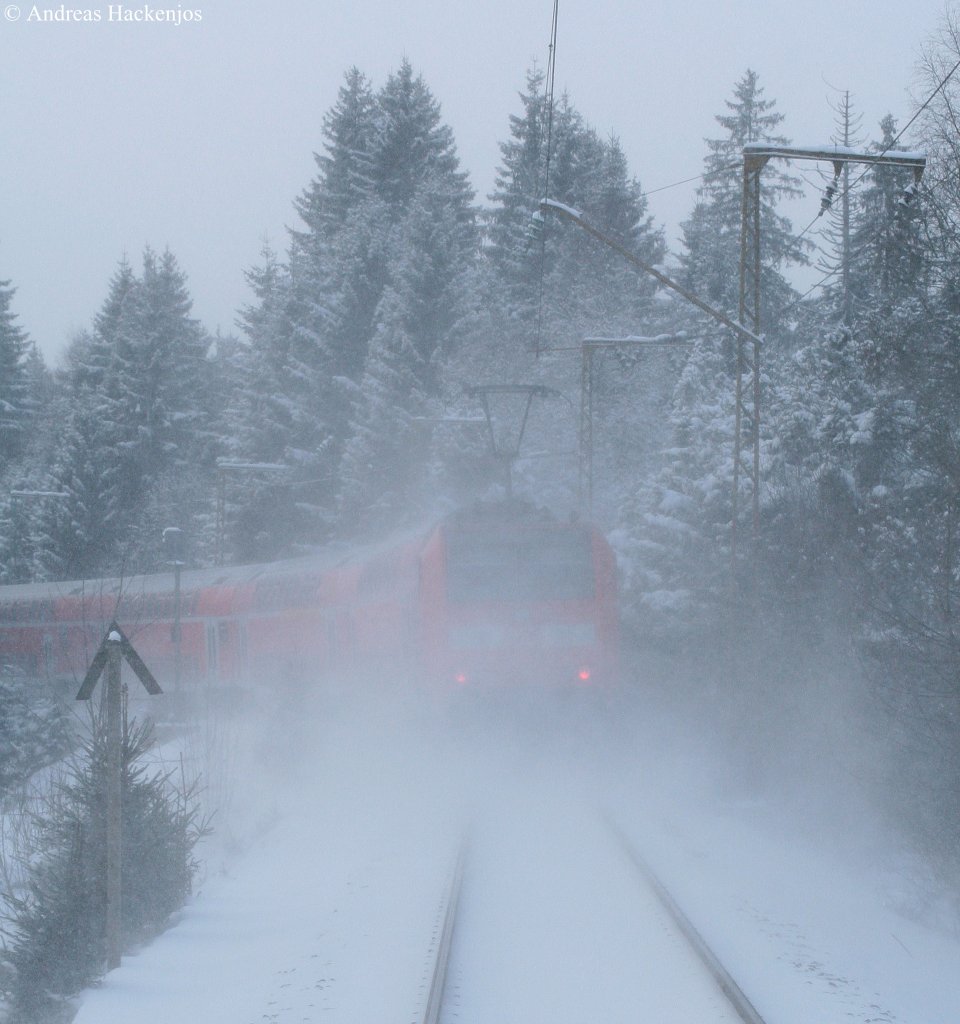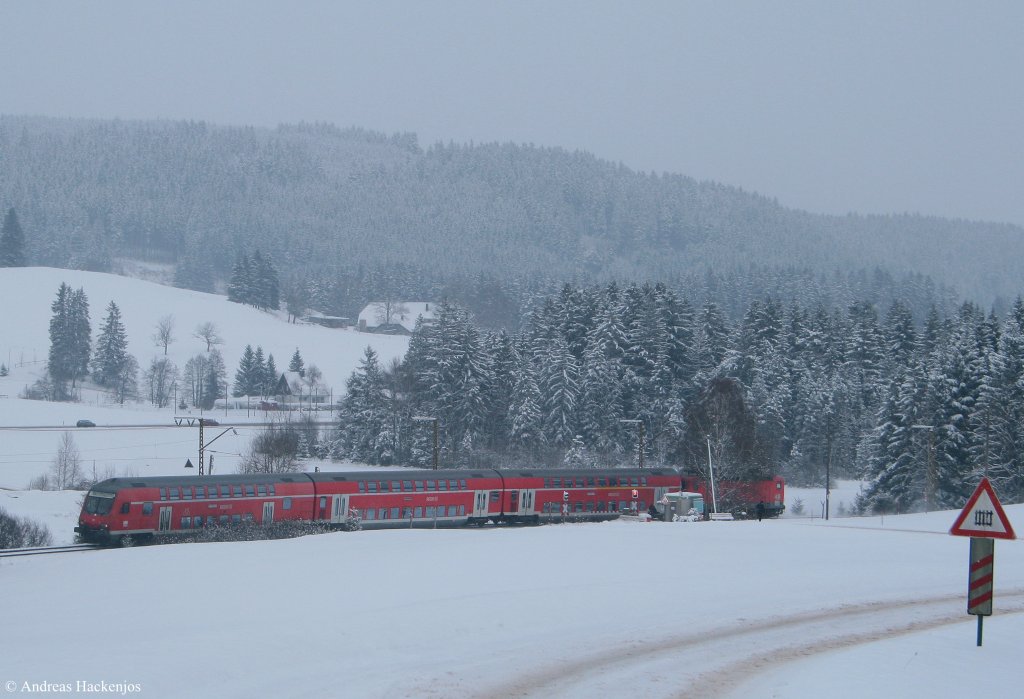 143 312-7 und 640-1 (Zugschluss) mit der RB 31594 (Neustadt(Schwarzw)-Freiburg(Breisgau) Hbf) bei Hinterzarten 19.12.09
